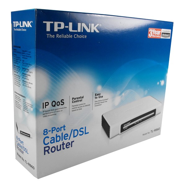 Create a wired network in your home using the TP-LINK 8-Port Cable/DSL Router (TL-R860). Connect this wired router to a broadband modem and share your high-speed Internet access, check email, share files, and enjoy online gaming. With the Easy Setup Assistant, you can easily build a wired network and share your high speed internet connection with all the PCs connected to surf the internet, chat online and check mails.