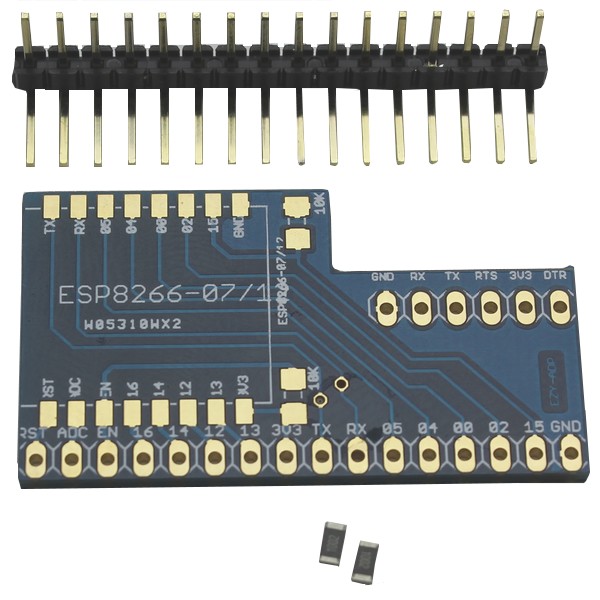 The package includes the adapter board, 2x10K resistors and 1x19 break away pin header either straight or right angle.