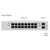 Two SFP ports offer optical connectivity, and 16 Gigabit Ethernet ports offer 802.3af/at PoE+ or 24V passive PoE sharing a total of 150W PoE.