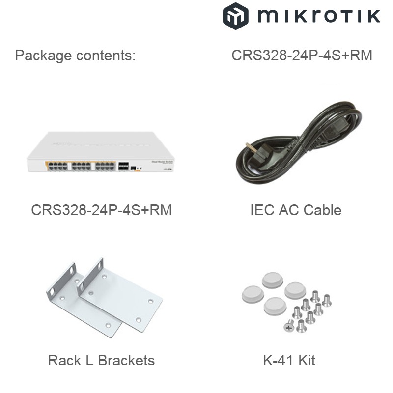 CRS328-24P-4S+RM comes in a 1U rackmount case with 100-240 V AC 500 W power supply built-in.