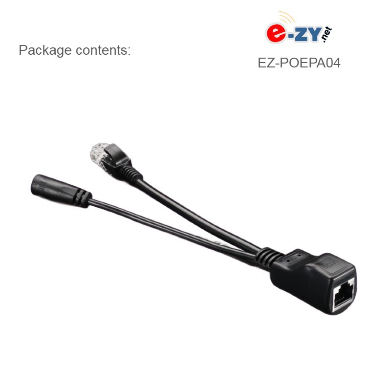 EZ-POEPA04, 10/100M Passive PoE Injector Shielded Black