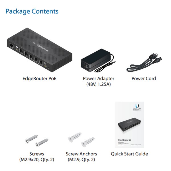 The EdgeRouter PoE combines 1 million packets per second routing performance with passive PoE support for network devices.