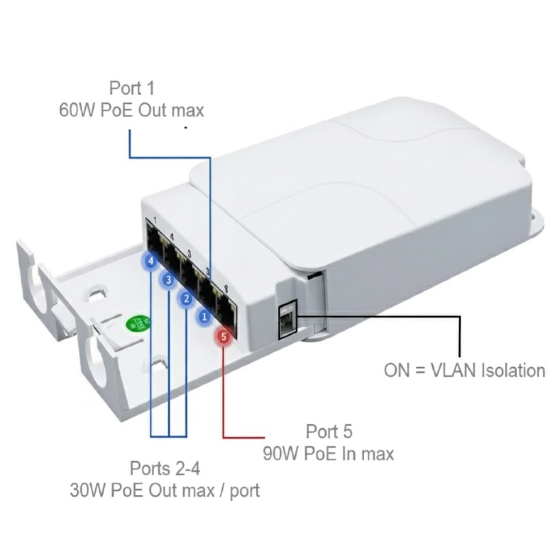 Features unique design, 1 port PoE In and 4 ports PoE-Out, SST-BT14FL can not only extend Ethernet and power transmission, but also simplify cabling by running one cable to power 4 POE devices, such as WiFi APs, IP camera, VoIP phone, door bell camera, etc.