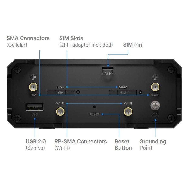 2x Detachable LTE (SMA), 2x Detachable WiFi (RP-SMA) |