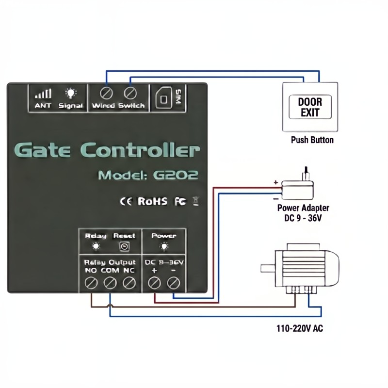 The GSM Gate Opener G202 is a very simple device which can be used for authorized door access, controlling gates, switching of remote equipments, car parking systems.