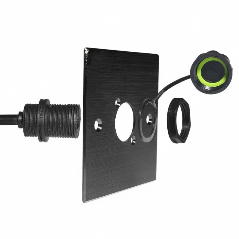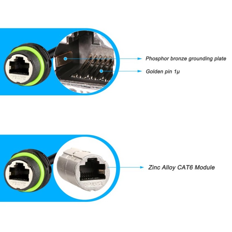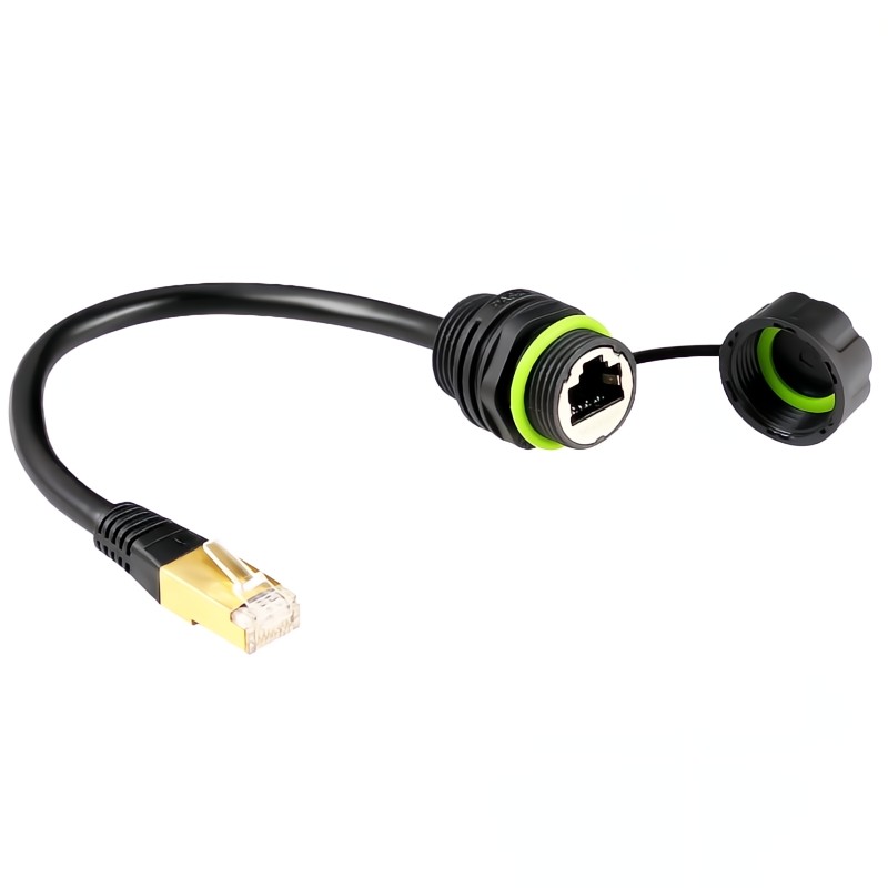 The system features a standard RJ45 Receptacle mounted in a UV protected housing which passes an RJ45 connector.