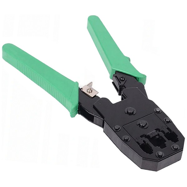 Durable 3 way crimper for CAT6, CAT5 - RJ45, RJ11, RJ12 - 8P8C, 6P6C, 6P4C connectors made with high quality steel.
