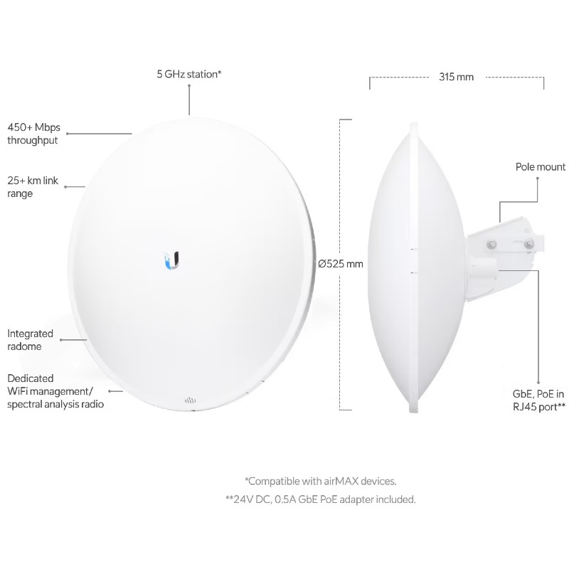 PBE-5AC-500 - UISP airMAX PowerBeam 5AC 500 27 dBi - ΠΕΡΙΛΑΜΒΑΝΕΤΑΙ ΠΛΑΣΤΙΚΟ RADOME