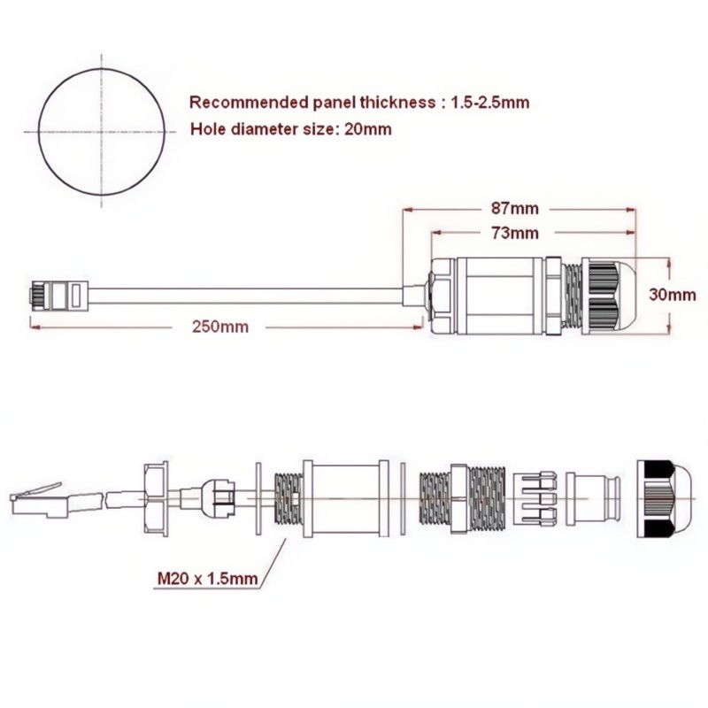 EZ-RJ45ECS20 - RJ45 Ethernet Connector System Cat.5e - M20