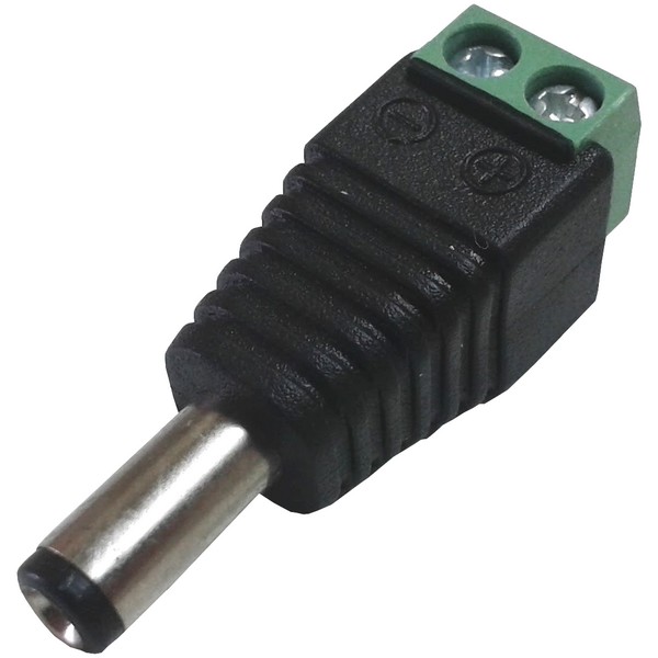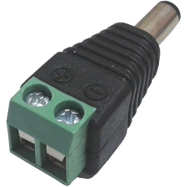 The EZ-MDCP1 DC Plug to Removable Terminal Block is a connector of a 2.1mm male DC plug to a removable terminal block.