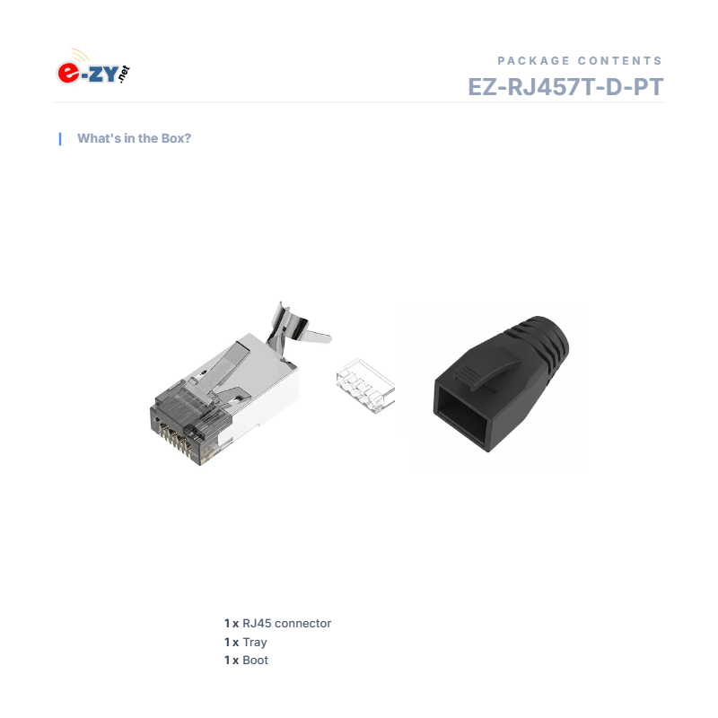 Shielded EZ-RJ457T-D-PT Connectors to create cables that meet Category Cat7 /Cat.6a standards.