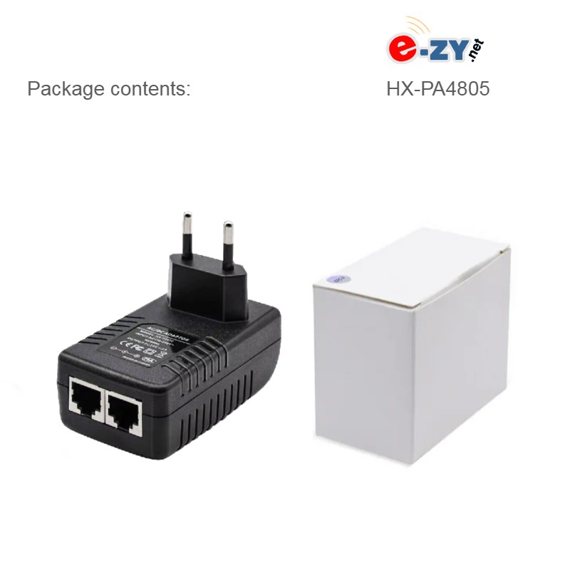 HX-PA4805 - 48v 24W 10/100M Power Supply + PoE Injector - WallplugOutput: 48V DC / 500mA