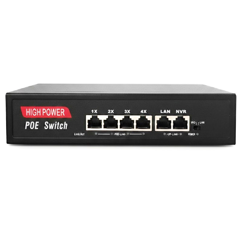 Features unique design, 2 ports without PoE Uplink / NVR and 4 ports 24v Passive PoE-Out.