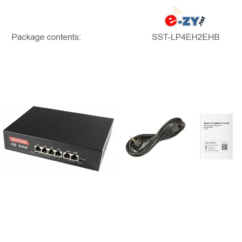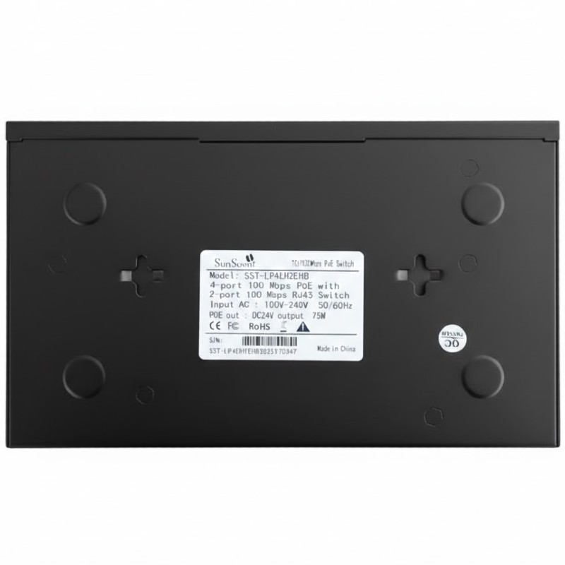 SST-LP4EH2EHB - 6-Port (4+2) 10/100 24v Passive PoE switch, 75W