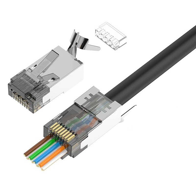 Shielded EZ-RJ457T-D-PT Connectors to create cables that meet Category Cat7 /Cat.6a standards.