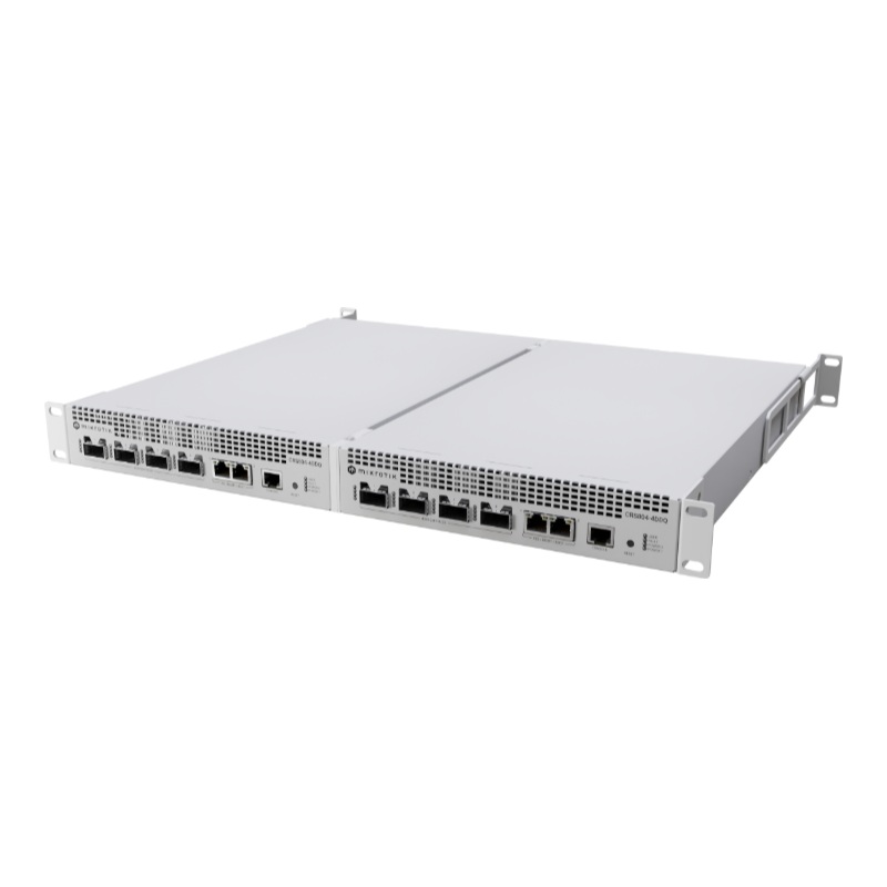 The CRS804 DDQ is a compact and reliable 400 Gigabit switch designed for modern AI workloads and next-generation network upgrades.