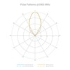 The radiation pattern features heavily suppressed side lobes, providing excellent noise immunity and superior performance in dense wireless environments.