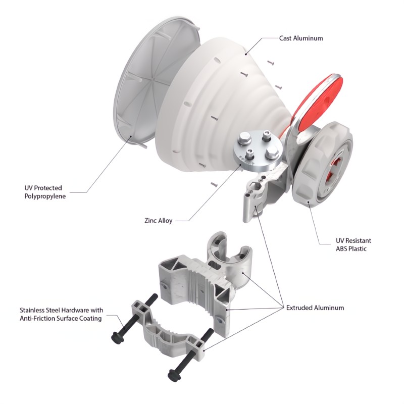 Materials UV Resistant ABS, Polyethylene, Aluminum, Stainless Steel