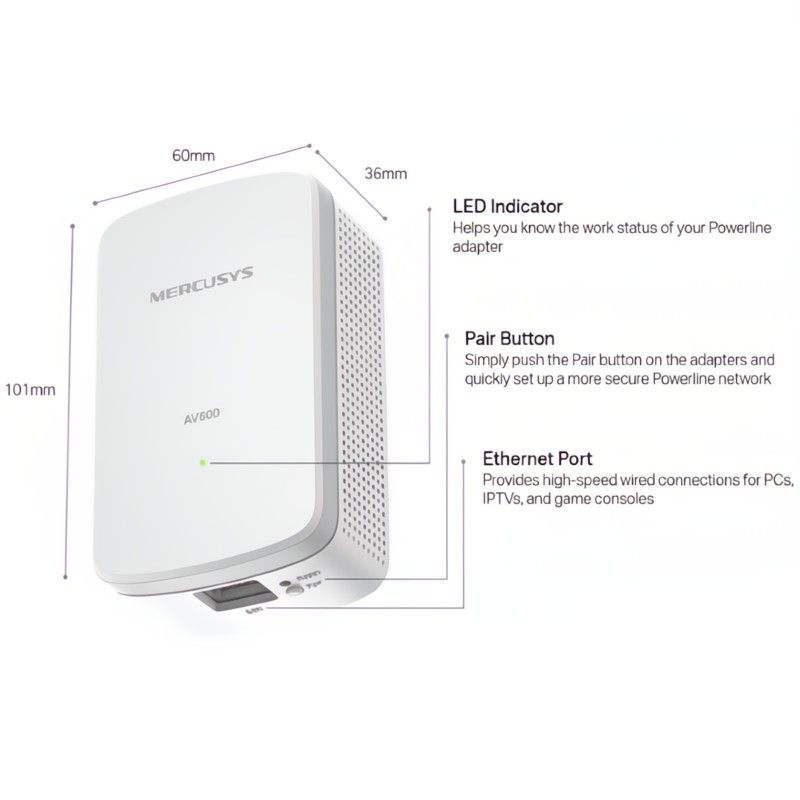 • 600 Mbps High-Speed Transfer Rate — Fast and stable transmissions with advanced HomePlug AV2‡