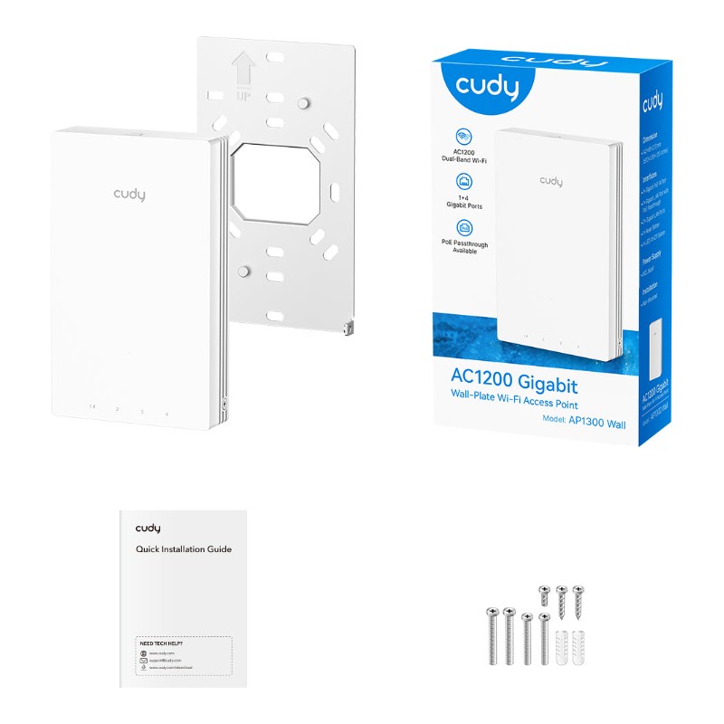 Cudy AP1300 Wall, Gigabit Wall-Plate Access Point, AC1200 v1