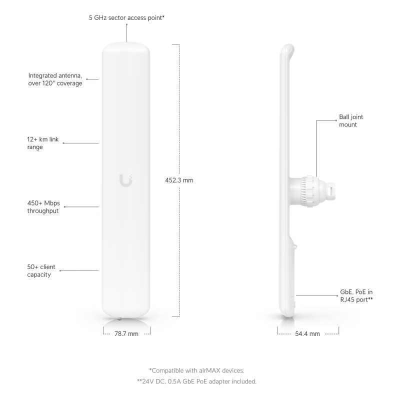 Ubiquiti LAP-120 is a complete radio system designed for 5GHz band working at 802.11ac standard.
