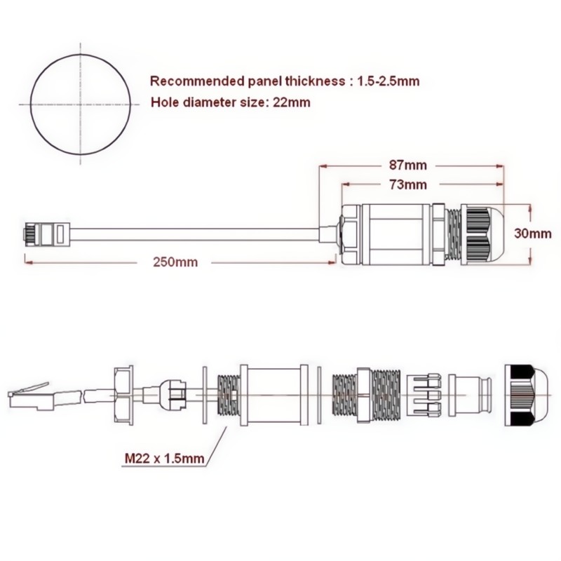 EZ-RJ45ECS22 - RJ45 Ethernet Connector System Cat.5e - M22