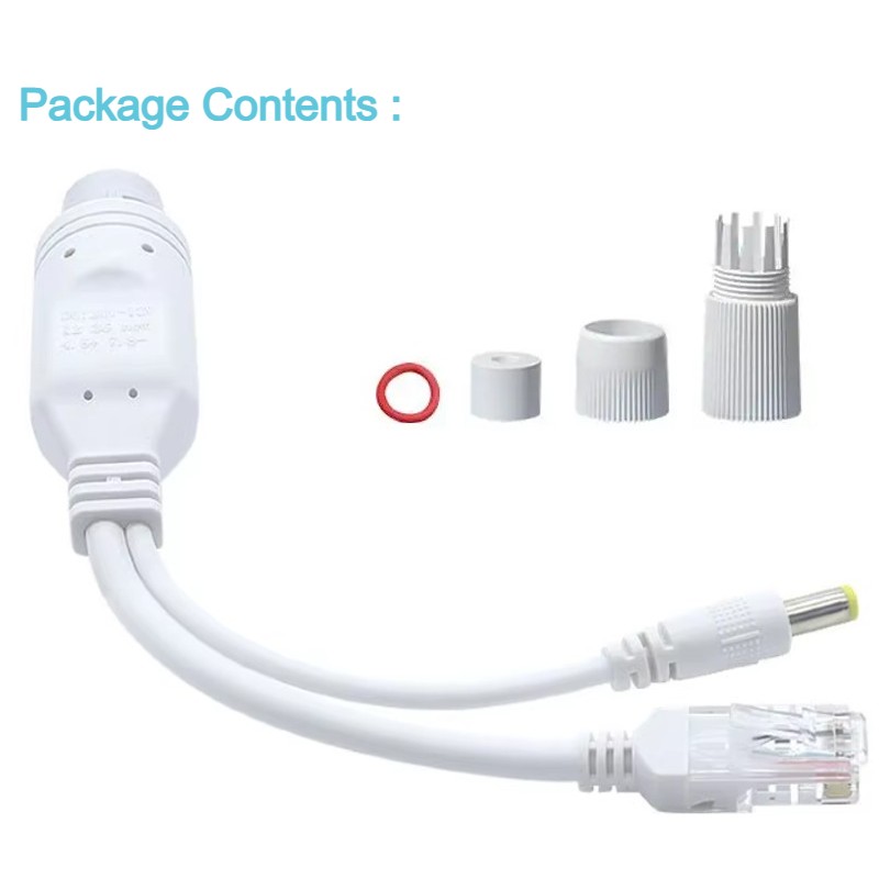 It accepts a range of 24v to 48v PoE input via the 10/100 RJ45 Jack to output fixed 12v/1A via the DC Jack (5.5 x 2.1mm).